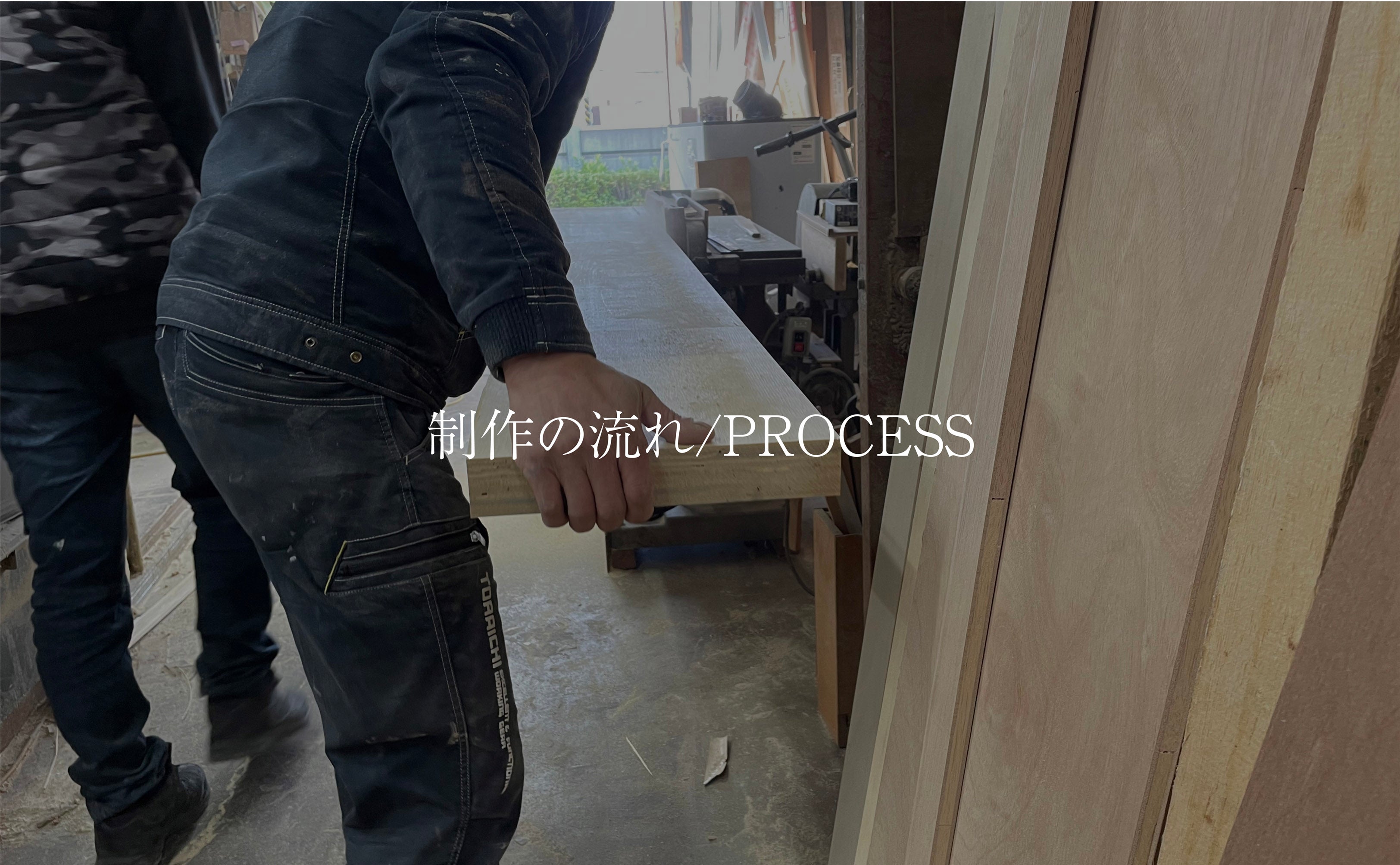 ドア枠に設置したらカンナで木幅を最終調整し、取手と錠部分に穴を開けます。